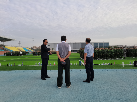 随后,领导老师们来到各个连队,与参训学生和教官恳谈,了解学生的军训体验及需求;走访医疗服务点、学院志愿服务点等地,详细查看军训工作的后勤保障情况,确保为教官和参训学员提供良好服务以保障军训工作顺利完成。