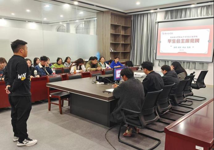 11月4日下午6点,MG冰球突破网站学生会主席竞聘大会在二教117举行,参加本次大会的有MG冰球突破网站的三位辅导员和学生会成员。