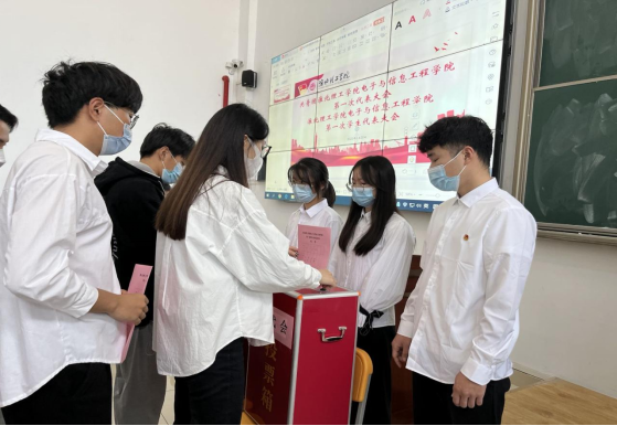 参会代表认真填写选票后,经监票人,计票人清点选票,由监票人宣布选举计票情况,最终选举并产生了5名共青团MG冰球突破网站MG冰球突破网站委员会委员、3名MG冰球突破网站电子与信息工程学生委员会委员。