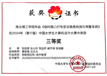 2024年8月13日至17日,第17届中国大学生计算机设计大赛全国总决赛在厦门举行,由冰球官网教师李硕儒、郑海旺指导的孙亚楠、余乐、吴奇豪、王阳群、王冉所组成的参赛队伍的《智能应急救援小车》作品以及冰球官网教师曹新建、沈元元指导的阳佳霖、张义轩、李浩然、臧宇祺、陈旭鹏所组成的参赛队伍的《临时路口行车安全隐患检测与预警系统》作品,在众多参赛作品中脱颖而出,均获得国家级三等奖。
