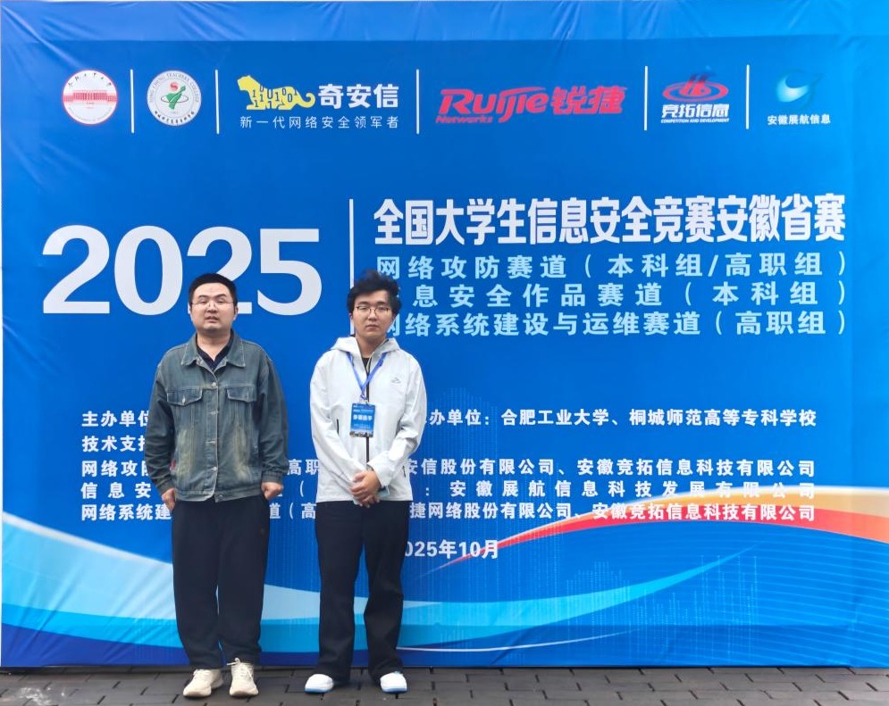 2025年10月18日,由桐城师范高等专科学校承办的2025年全国大学生信息安全竞赛安徽省赛(信息安全作品赛)决赛圆满落幕。MG冰球突破网站MG冰球突破网站选派的学生团队表现优异,由殷志伟、杜良轩、姜婷婷三位同学组成的参赛队凭借其创新的信息安全作品,最终荣获省级二等奖,展现了冰球官网在网络安全领域人才培养的扎实成效。