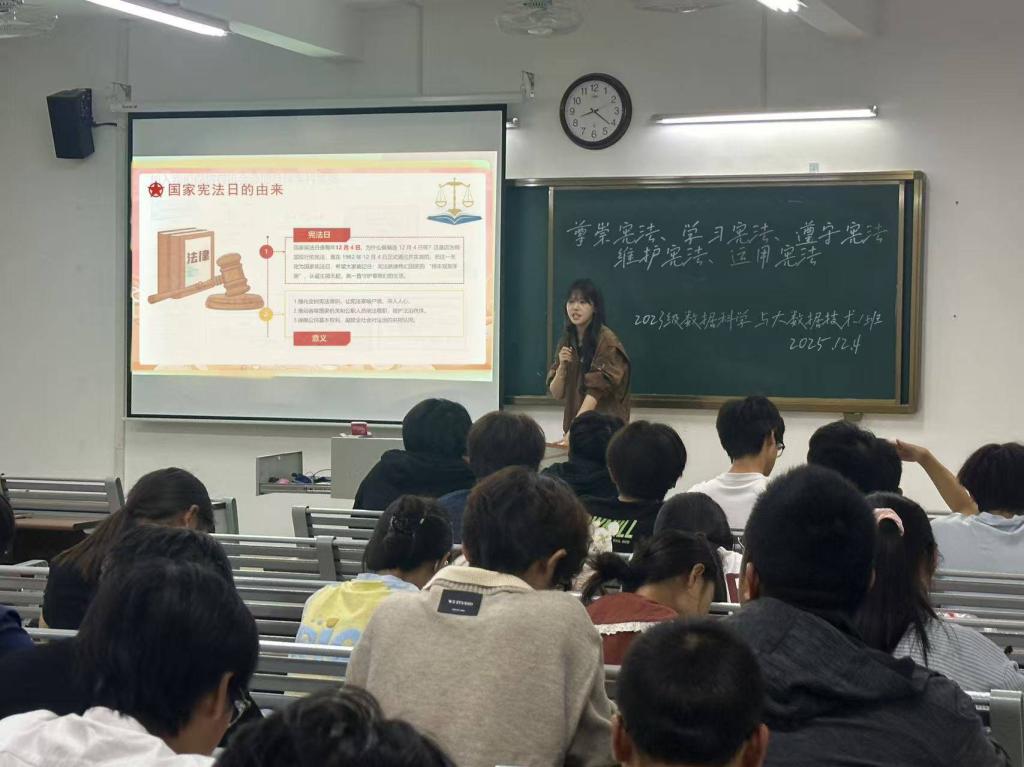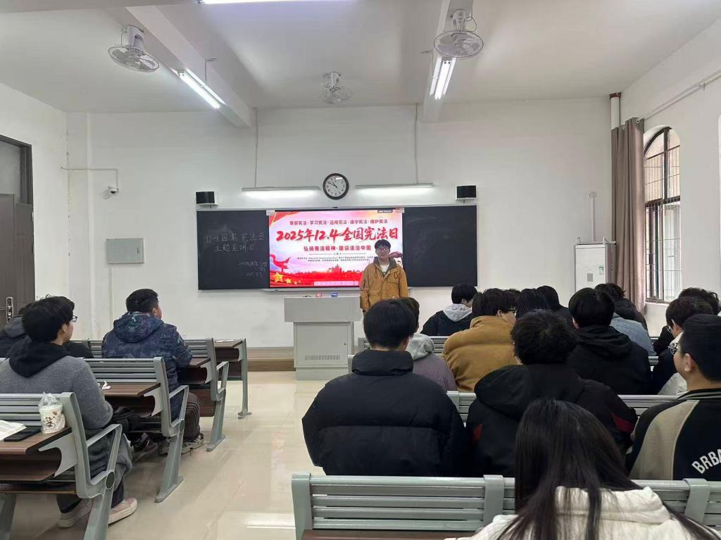 为深入学习宣传习近平法治思想,大力弘扬宪法精神,引导青年学生增强宪法意识、树立法治观念,在第十二个国家宪法日来临之际,MG冰球突破网站组织2023级、2024级和2025级各班级开展“12・4”国家宪法日主题宣讲活动。