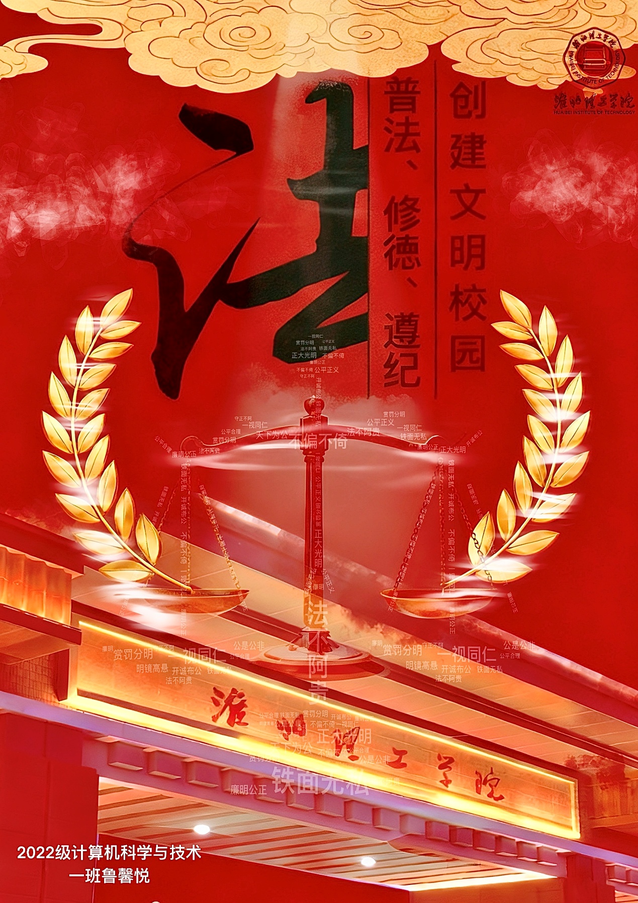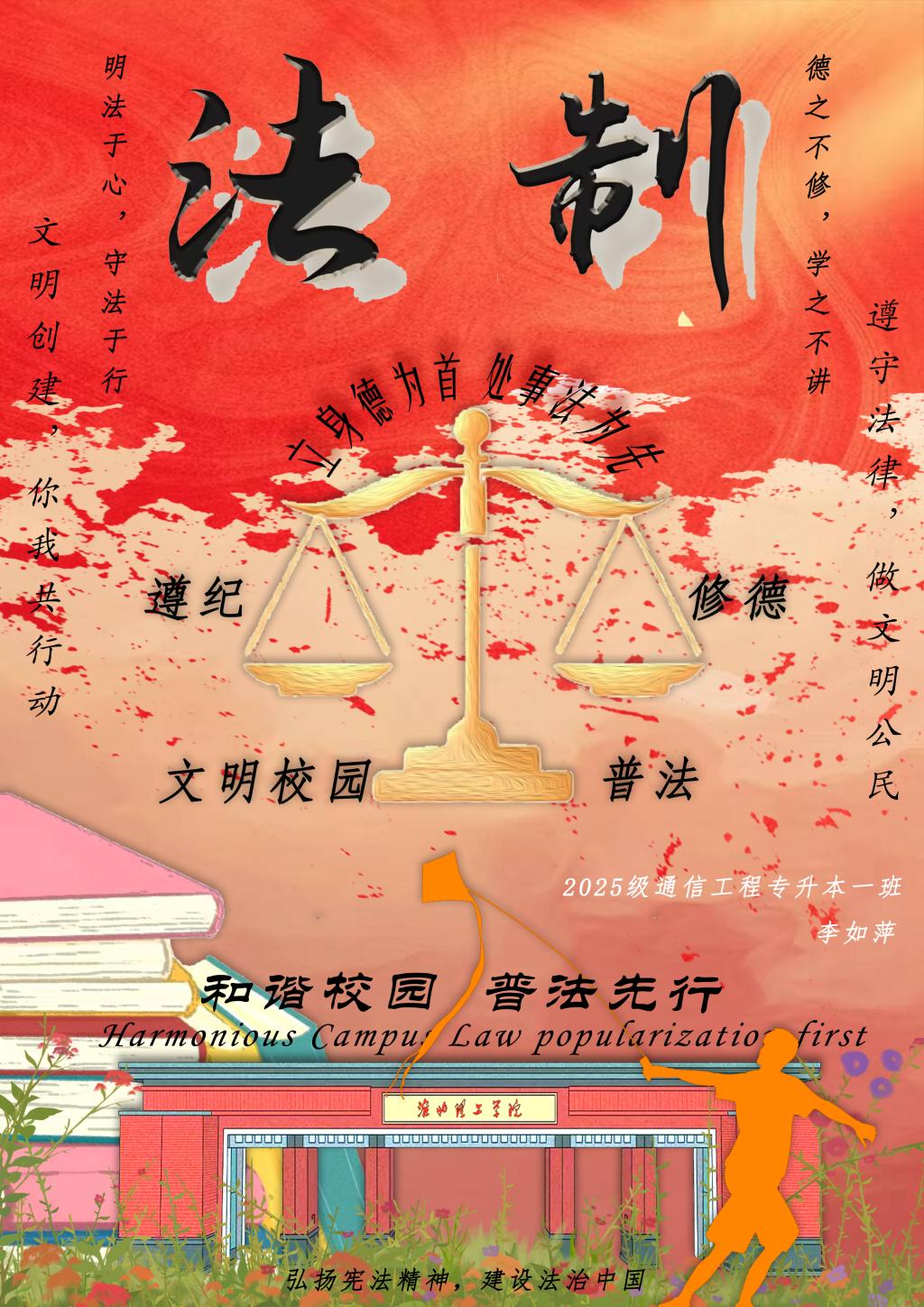 活动自启动以来,吸引全院100余名同学积极报名参与。创作过程中,同学们紧扣活动核心要求,立足校园生活实际,围绕“法治知识普及、传统美德传承、校规校纪践行、文明行为倡导”四大方向展开创作。作品设计兼具思想性与艺术性:有的以鲜明色彩搭配法治符号,直观传递“学法懂法、守法用法”的理念;有的通过校园场景手绘,生动展现“诚信友善、互助共进”的品德之美;有的以简洁文字与强烈视觉对比,凸显“遵规守纪、文明自律”的行为导向;还有的融入学院专业特色元素,将技术美感与主题内涵巧妙结合,让海报成为传递正能量的生动载体。