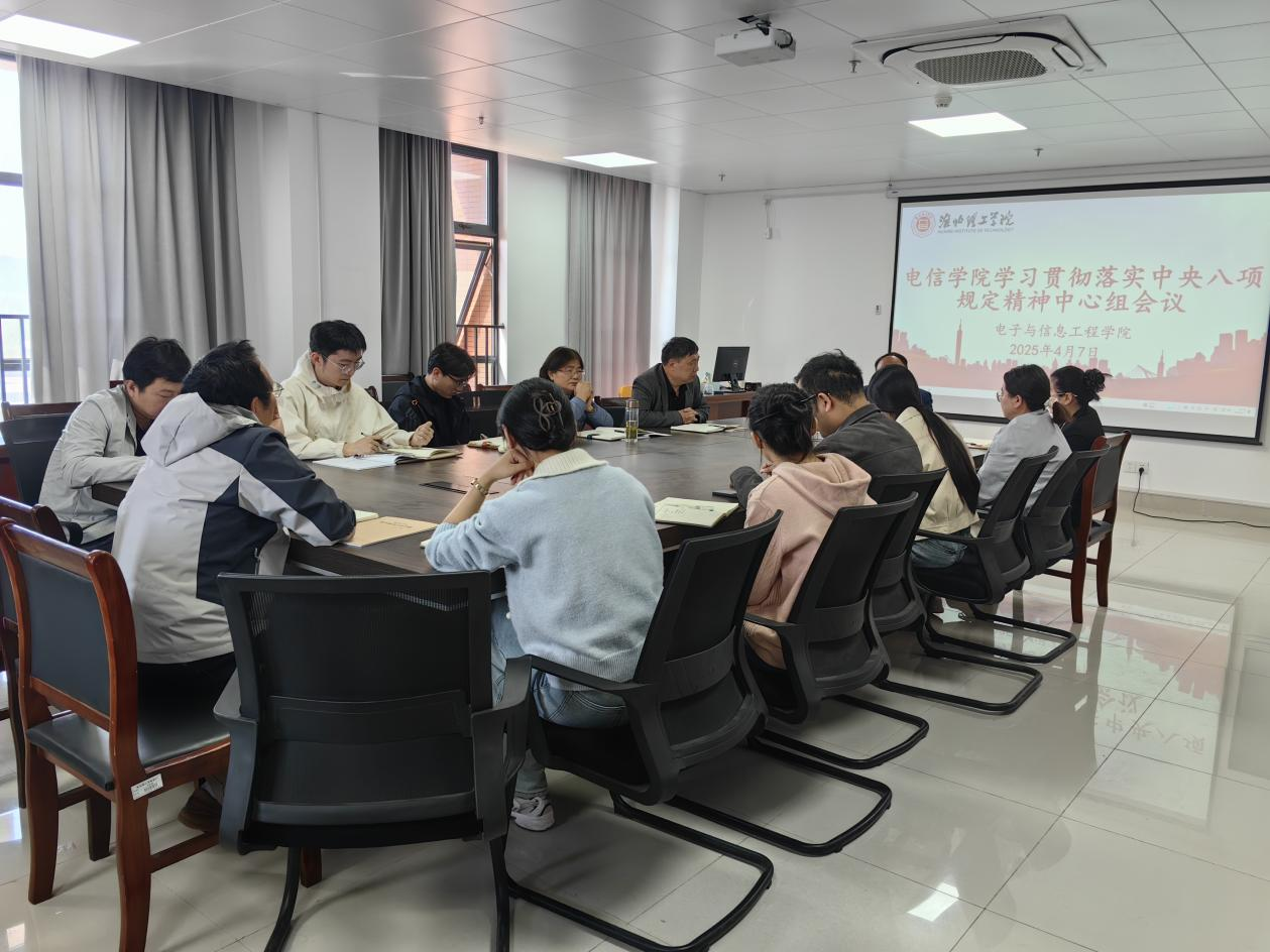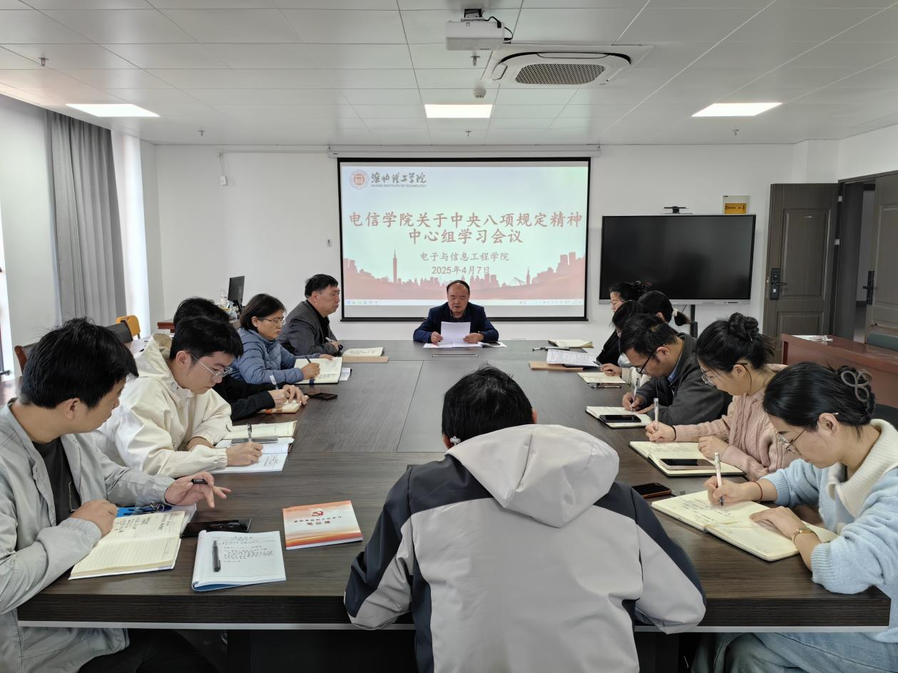 2025年4月7日,MG冰球突破网站在行政楼713会议室召开中心组会议,专题学习贯彻落实中央八项规定精神。本次会议由院党总支书记朱昌杰主持,院党总支委员、各党支部书记、各学科带头人及各教研室主任参加会议,旨在通过深入学习与研讨,推动学院作风建设常态化长效化,为学院高质量发展提供坚强保障。