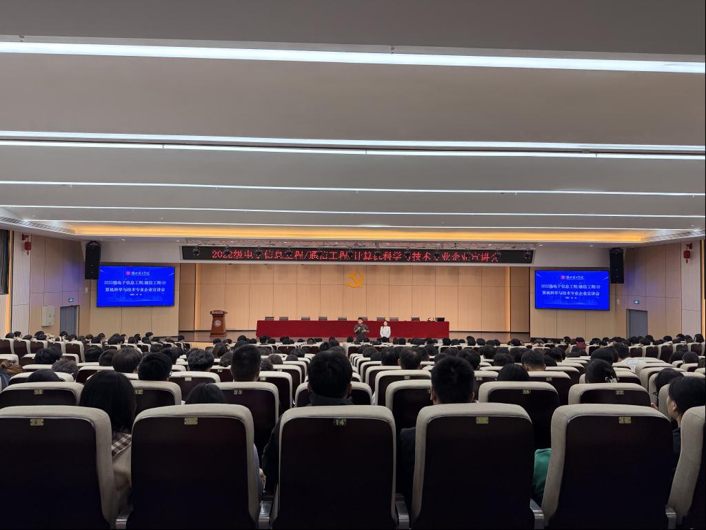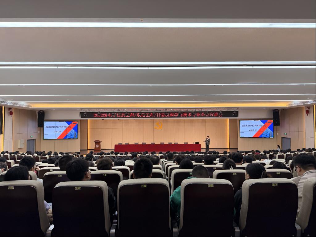 为扎实推进2026届学生专业实习工作,搭建校企协同育人平台,10月15日晚,MG冰球突破网站MG冰球突破网站在学校一楼报告厅成功举办专业实习宣讲会。本次活动面向2022级电子信息工程、通信工程及计算机科学与技术三个专业300余名学生,特邀安徽硅砚人工智能基础资源技术有限公司与安徽宝创电子商务有限公司两家本地优质企业来校,为学子们带来专业对口的实习岗位与成长机会。