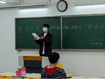 为全面贯彻党的教育方针,落实立德树人根本任务,坚持和落实“依法治校,以德治校”,在2022年11月13日晚,MG冰球突破网站MG冰球突破网站开展了“学法律、修品德、遵校纪,创建文明校园”演讲比赛。