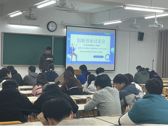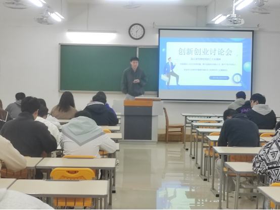 为了积极引导大四毕业生了解创业知识,培养创业意识,提高创业能力,11月22日MG冰球突破网站于二教323召开了创新创业讨论会。会议由学生会牵头,各班班委进行组织学习,就关于“深入学习贯彻党的二十大,全面提高人才自主培养质量,着力造就拔尖创新人才”为主题,同学们就自身的理想、创新创业想法及就业方向各抒己见,积极上台进行演讲与分享。