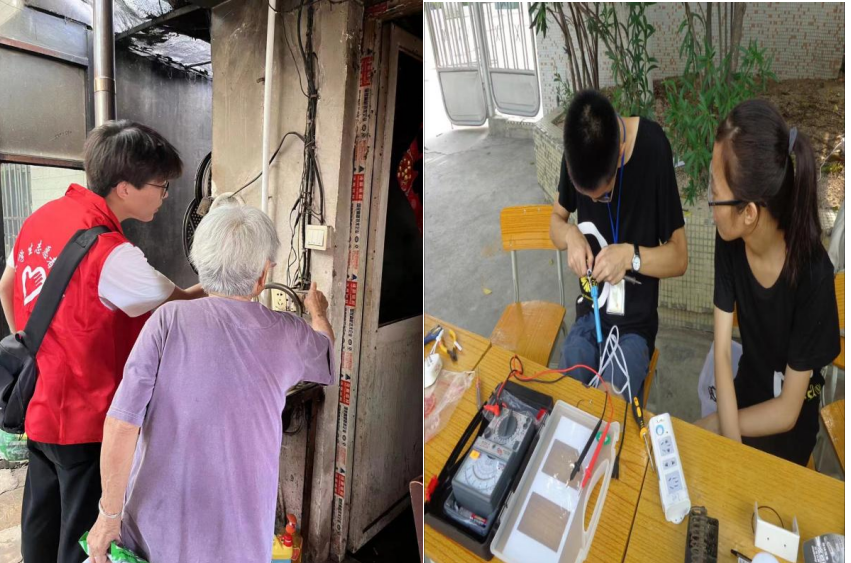图三 为居民排除角落里老旧的电线以及修缮