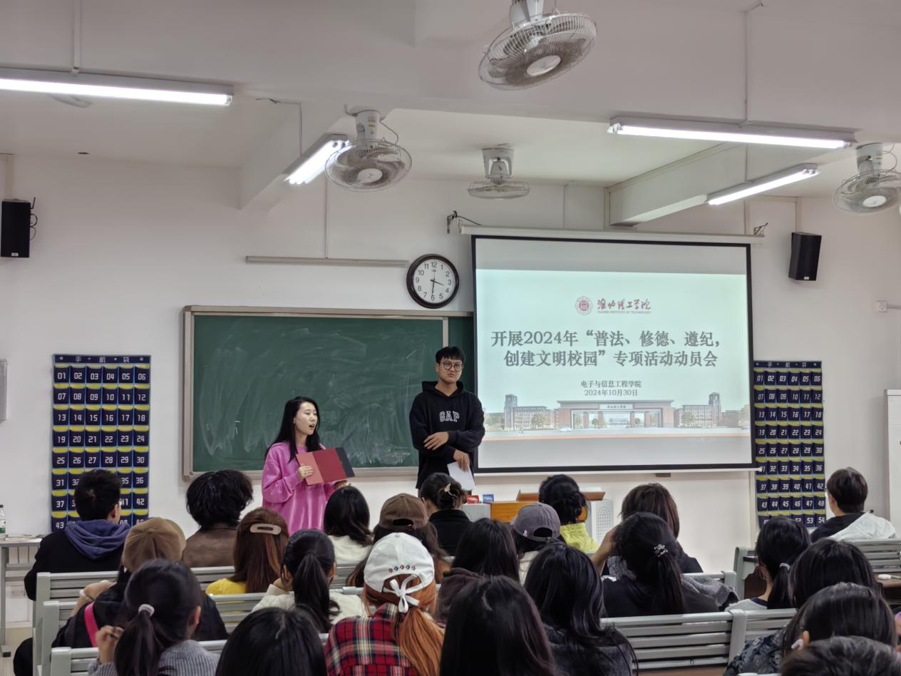 为迎接学校2024年“普法、修德、遵纪,创建文明校园”专项活动,MG冰球突破网站于2024年10月30日召开“普法、修德、遵纪、创文明校园”动员大会,学院老师和2024级班委参会。
