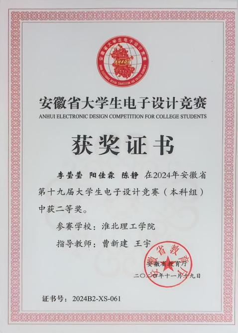 大学生电子设计竞赛题型多样,涵盖电源、信号源、高频无线电、放大器、仪器仪表、数据采集与处理、控制等类别。兼具理论设计与实践制作,在曹新建老师及其他专业教师的悉心指导下,参赛队伍历经数月的精心筹备与刻苦钻研,进行了全面而深入的赛前准备。从理论知识的巩固到实践技能的锤炼,每一步都凝聚着师生们的智慧与汗水,确保了参赛队伍以最佳状态迎接安徽省大学生电子设计大赛的挑战,最后有4支队伍在此次比赛中取得了优异成绩。