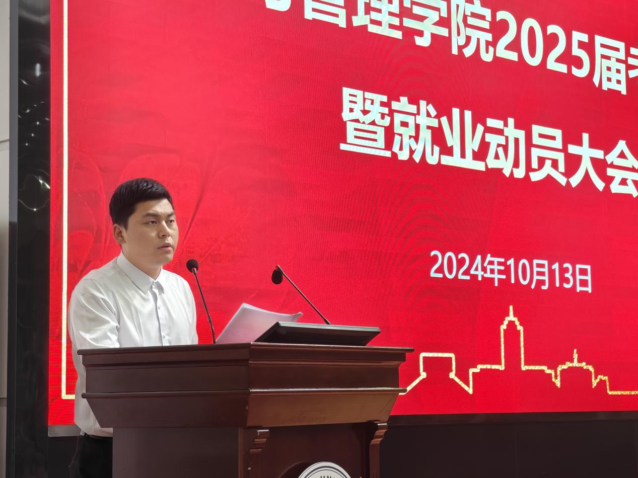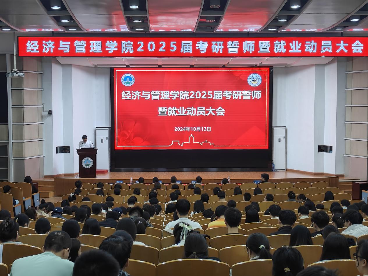 (通讯员 刘青沂 韩梦彦 徐子轩)为深入学习贯彻党的二十届三中全会精神,落实教育部关于高校毕业生就业工作部署,充分调动学生实习就业考研的积极性,10月13日晚七点,350vip浦京集团官网2025届考研誓师暨就业动员大会在12教405举行。三得利人才集团王雅诗总经理、350vip浦京集团官网副院长裴潇、党委副书记平先锋、21级辅导员李云妮、郭俊及21级全体本科生参加活动,本次大会由郭俊老师主持。