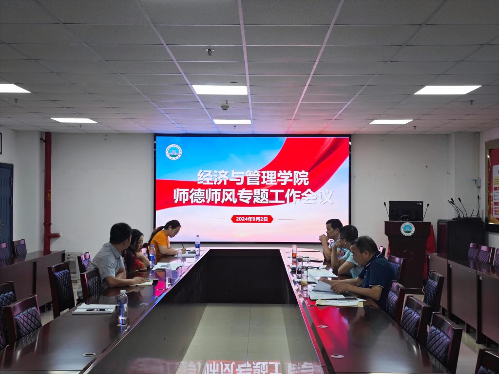 (通讯员 贺雄)9月2日上午,学院在文科楼505会议室召开师德师风专题工作会议。学院党委书记樊帆主持会议,学院全体领导班子参加会议。