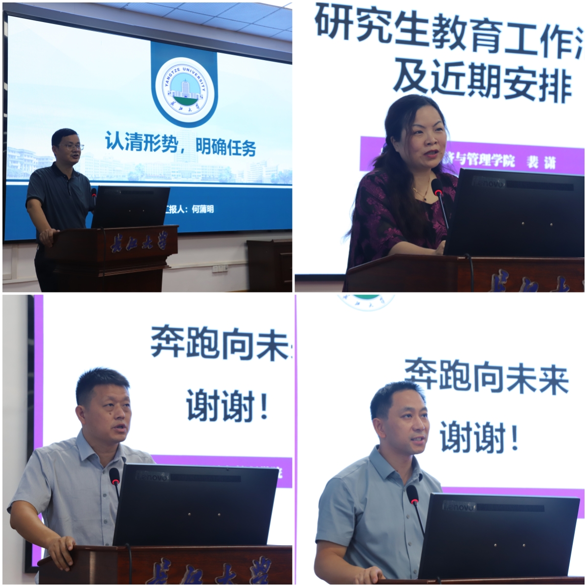 学院副院长何蒲明以“认清形势,明确任务”为题,从学院学科建设的基本现状、科研任务完成情况、后期主要工作等三个方面出发,指出学院目前在相关工作中的不足之处,提醒老师们要明确努力的方向,为学院高质量发展贡献力量;副院长裴潇从学位点评估、研究生招生、研究生培养、研究生新生入学工作等四个方面做了工作安排,并特别强调了学位点评估工作面临的挑战,传达了前期学位点核验和评估阶段专家反馈的意见和建议,对老师们提出了相应的要求,动员大家齐心协力做好整改工作;副院长王华强针对开学第一周上课准备、开学补考、毕业生学分核验、毕业论文抽检、毕业生推免等做了详细的工作安排;党委副书记平先锋就学生工作做了重要提示,先是向老师们通报了暑期学生工作开展情况,接着就近期的开学报到工作、毕业生就业工作、新生入学工作、工会工作等进行了详细部署。