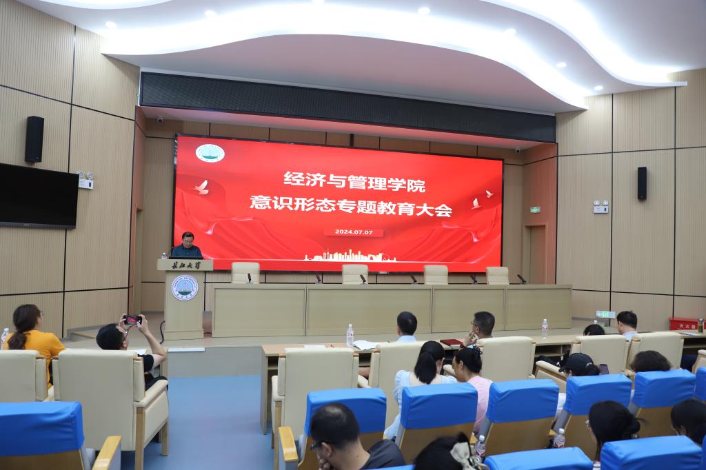 (通讯员:彭蓉)7月7日下午,350vip浦京集团官网在11教学术报告厅召开2024年春季学期末教职工政治理论学习大会暨意识形态专题会议。学院党政领导班子成员、全体教职工参加会议。会议由学院党委书记樊帆主持。