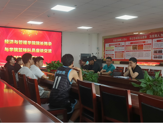 最后,院长陈承对本次座谈会进行了总结。他通过三方面寄语篮球队:一要保持良好心态、从积极角度看待得与失。可以从失败中汲取经验;二要打造韧性,担得起重任,提高心理承受能力,促进个人和院篮球队的成长;三要保持奋斗不止的心态。不断学习,打开格局,从篮球中得到不同的收获。并希望院篮球队能更好发展,传承院篮球精神,打出经管风格。