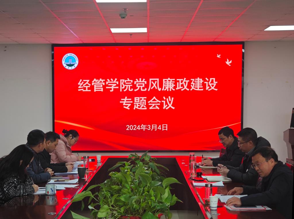 (通讯员 贺雄)为进一步加强学院党风廉政建设,增强全体领导拒腐防变意识,经管学院3月4日召开了党风廉政建设专题会议,会议由学院党委书记樊帆主持。