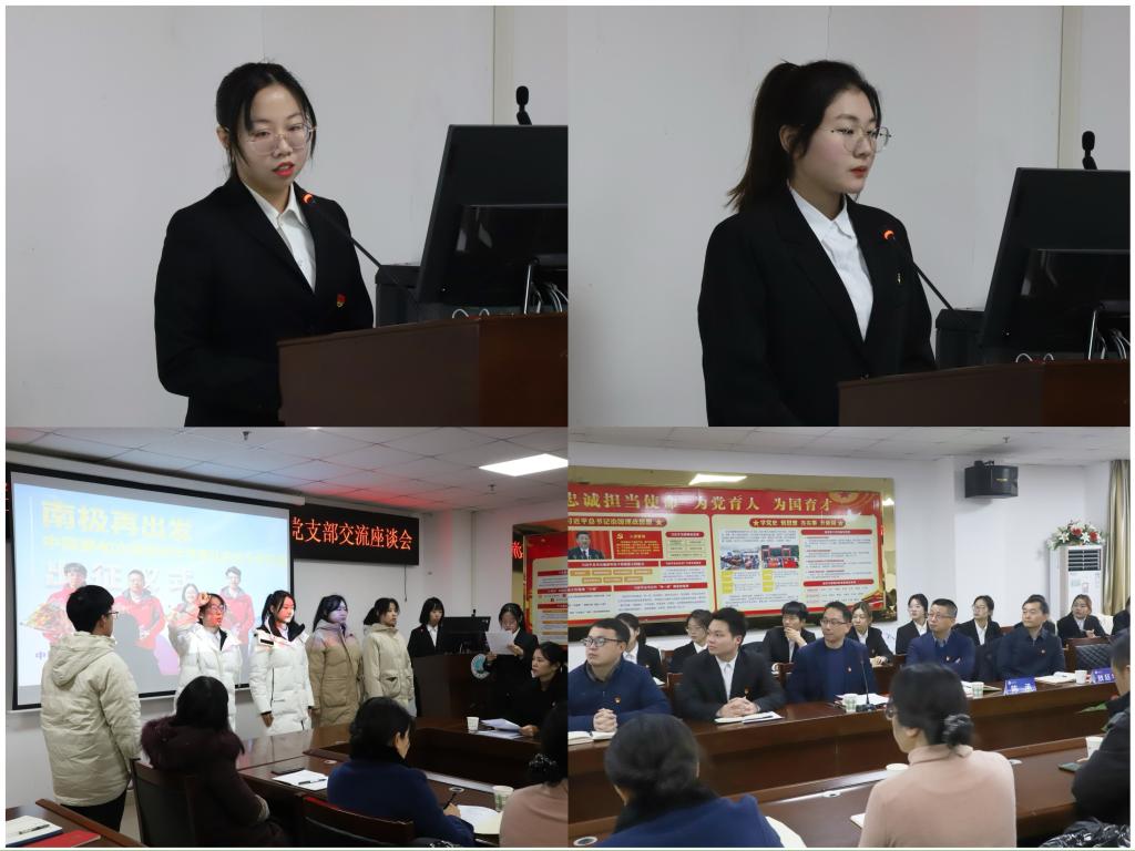 在主题党日活动中,全体党员重温入党誓词。学生党员牟子凡同志以《凝聚先锋力量,打造生态长江》为主题进行微党课汇报。支部副书记洪雨洁带领全体党员进行理论学习,介绍全省深化党员干部下基层察民情解民忧暖民心实践活动。六名学生党员以情景剧的形式围绕《习近平总书记给武汉大学参加中国南北极科学考察队师生代表的回信》展开主题研讨,带领全体党员同志感悟“始终胸怀‘国之大者’,接续砥砺奋斗,练就过硬本领,勇攀科学高峰”的深刻内涵。