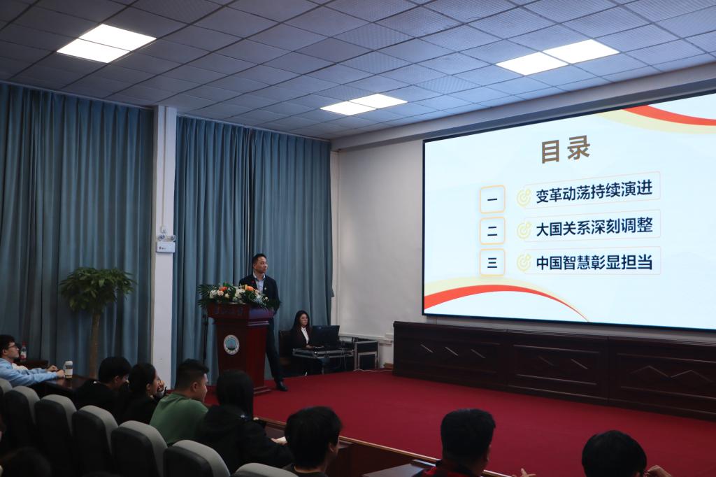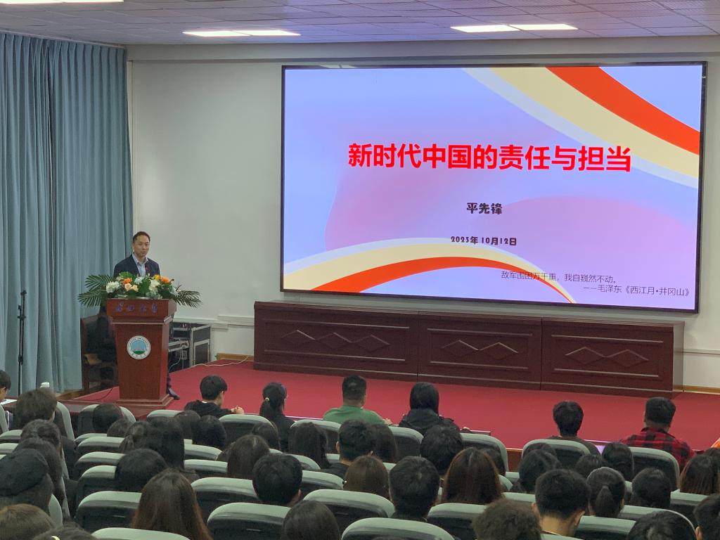平先锋以“新时代中国的责任与担当”为主题进行授课。会中,他结合当前国际发展局势,针对我国各方面现状,从变革动荡持续演进、大国关系深刻调整、中国智慧彰显担当三个方面,向入党积极分子们作出了阐释,着重为入党积极分子们分析了新时代下中国智慧所彰显的大国风范与担当,引导同学们关心时政热点和党的领导方针政策,清晰自身学习方向,明确个人与国家的责任担当,加强自身素质能力的提升,更快更好地向党组织靠拢。