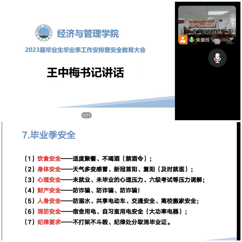 (通讯员:张杰)为确保毕业生离校期间各项教育工作高效、稳定、有序地开展,5月24日上午,浦京集团官网在文科楼505会议室召开2023年毕业季工作安排暨安全教育大会。会议采取线上线下相结合的方式,学院党委副书记王中梅、辅导员朱翠玲及2023届全体研究生毕业生参加会议。