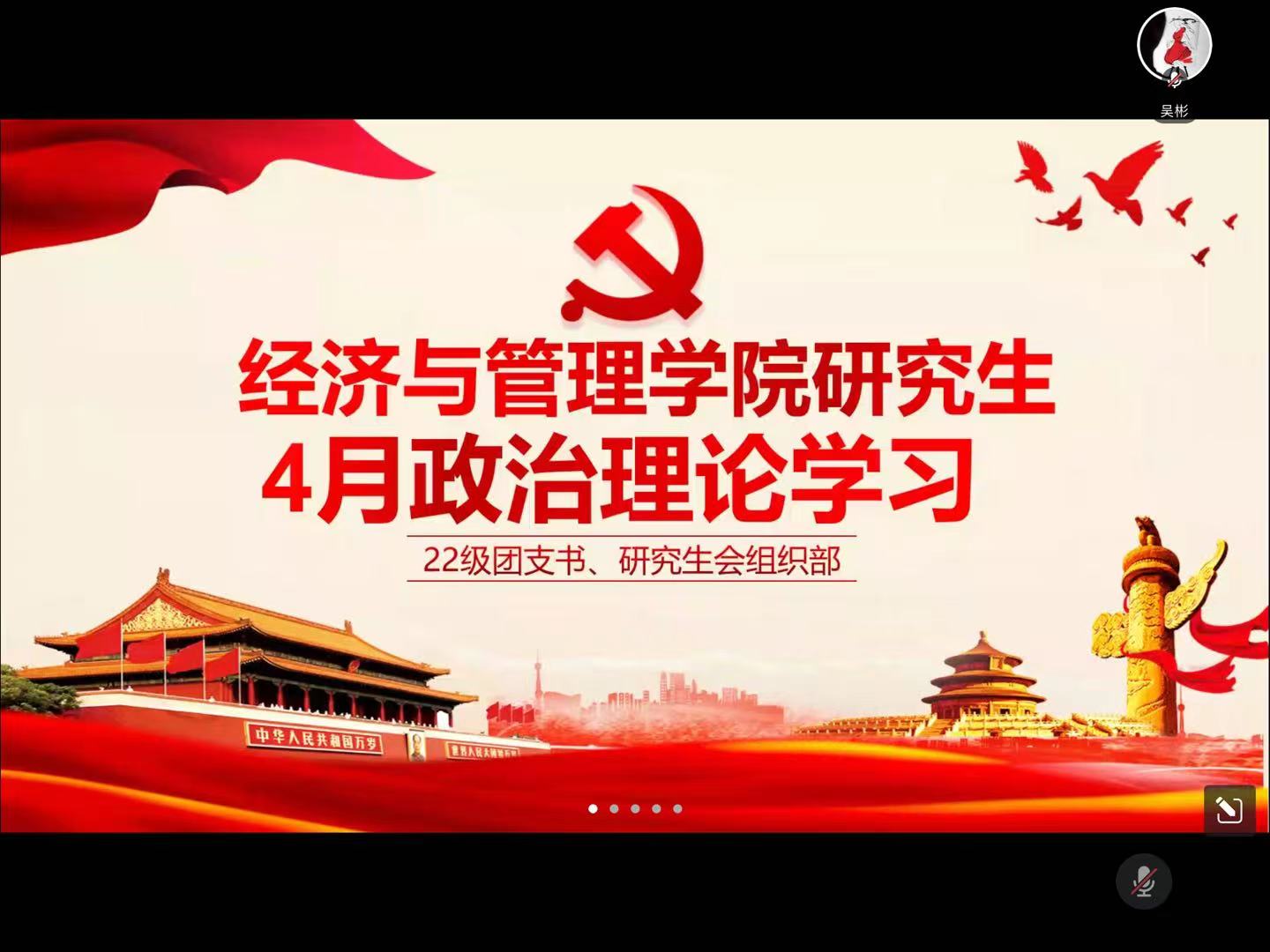 (通讯员:吴彬)为丰富研究生学习生活,加强对政治理论知识的掌握,4月20日晚7点,350vip浦京集团官网通过腾讯会议开展四月政治理论学习活动。本次活动由研究生会组织部及22级团支书组织,全体研究生参与活动。