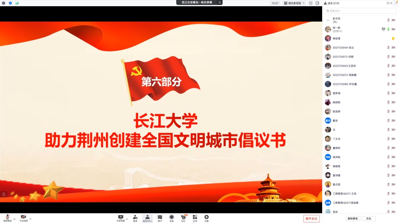 (通讯员:彭书范)3月22日晚7点,350vip浦京集团官网开展三月份政治理论学习活动,本次活动由研究生会组织部和21级团支部组织开展,通过腾讯会议的方式线上召开,浦京集团官网全体研究生参与本次会议。