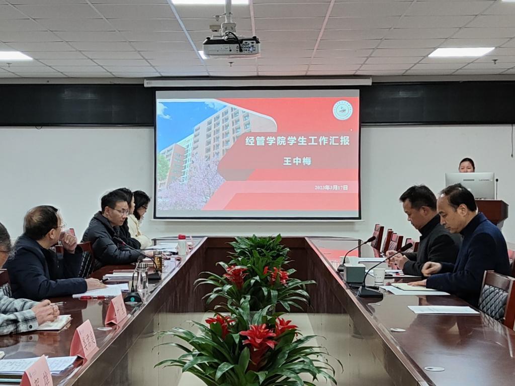 (通讯员:李博)3月17日,校党委副书记、副校长杜国锋带领学生工作处副处长谢作喜到浦京集团官网开展学生工作专题调研。学院党委书记樊帆、党委副书记王中梅及全体辅导员参加调研座谈会。