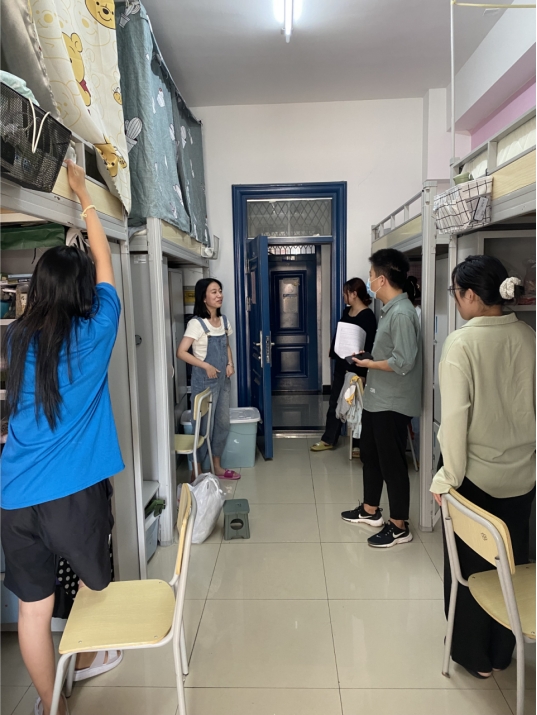 安全问题重于一切,黄老师在熟悉新同学的同时也在强调寝室安全问题。劝诫同学们在寝室禁止使用大功率违规电器、禁止饮酒,不随意搭接插座。提倡同学们不在寝室抽烟,制定寝室公约等。鼓励同学们走出寝室,走进操场。