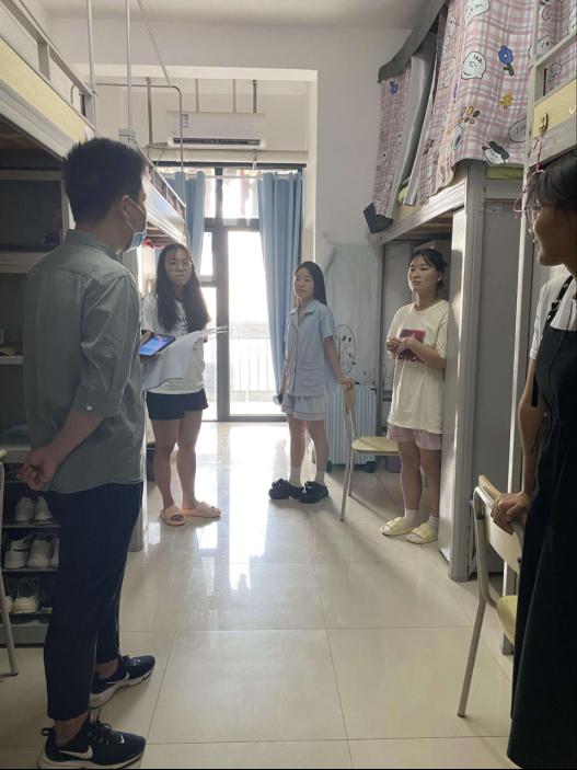 9月8日下午两点到五点,350vip浦京集团官网2022级研究生辅导员黄承石老师带领学生干部分别在南苑22栋和人才公寓看望2022级研究生新生。