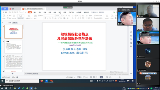 (通讯员:文筱然)为提高学院决策咨询报告写作水平与质量,4月22日下午,浦京集团官网邀请了山西农业大学公共管理学院院长吴易雄教授在线上与大家开展题为“敏锐捕捉社会热点及时高效服务领导决策——深入解析决策咨询报告撰写的技巧和方法”的学术讲坛。经管学院院长徐辉、教师代表参加了本次活动,讲座由经管学院副院长何蒲明主持。