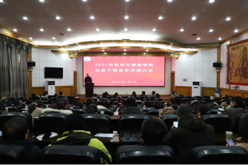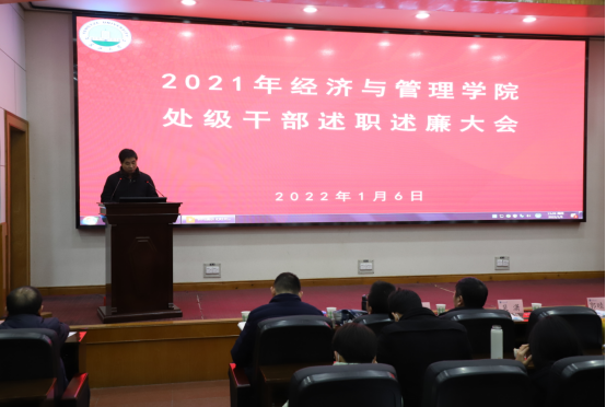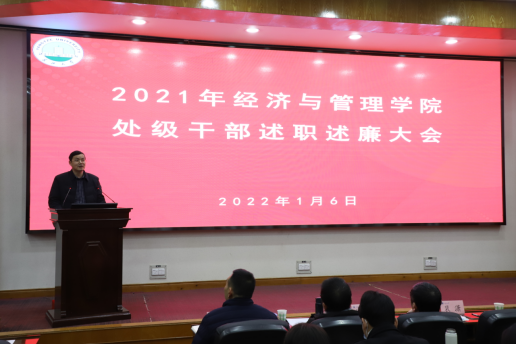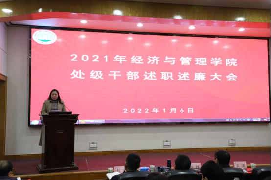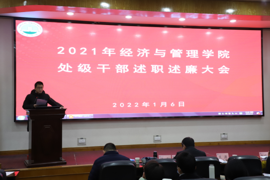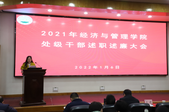 (通讯员:彭蓉 / 摄影:涂雷)根据校党委的统一安排和部署,2022年1月6日下午,350vip浦京集团官网在11教学术报告厅召开2021年度领导干部述职述廉大会。学校第二考核组成员到会指导并组织开展考核工作。学院领导班子全体成员、全体教职工120余人参加会议。 学院党委书记樊帆主持会议。