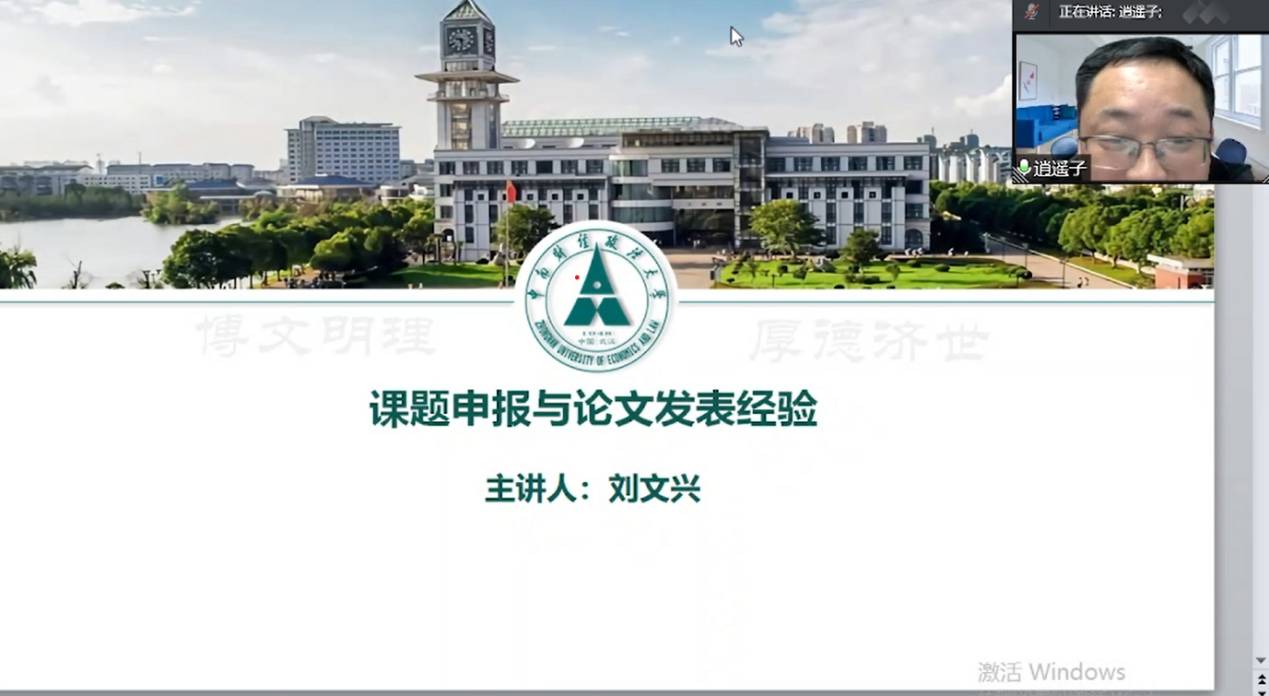 2021年12月13日晚18:30,由350vip浦京集团官网主办的“课题申报与论文发表经验”学术讲座通过线上会议形式成功举办。此次会议由350vip浦京集团官网管理系主任王华强副教授担任主持,由中南财经政法大学工商管理学院刘文兴教授担任主讲人,350vip浦京集团官网及其他文科院系的老师和同学参与。