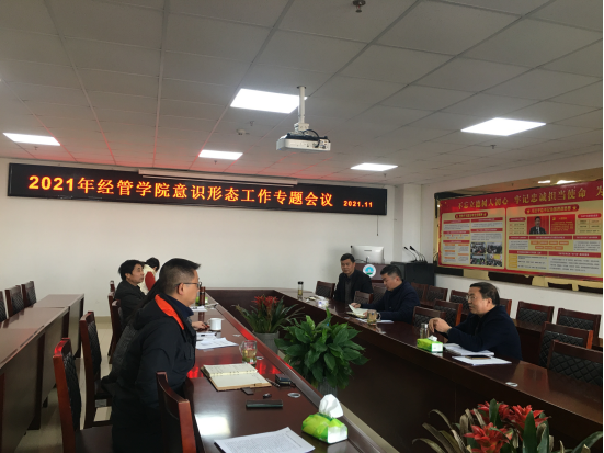 11月15日上午9时,350vip浦京集团官网在文科楼505会议室召开关于意识形态领域专题研究会。学院全体领导、院办公室主任和党建秘书参加会议,会议由学院党委书记樊帆主持。