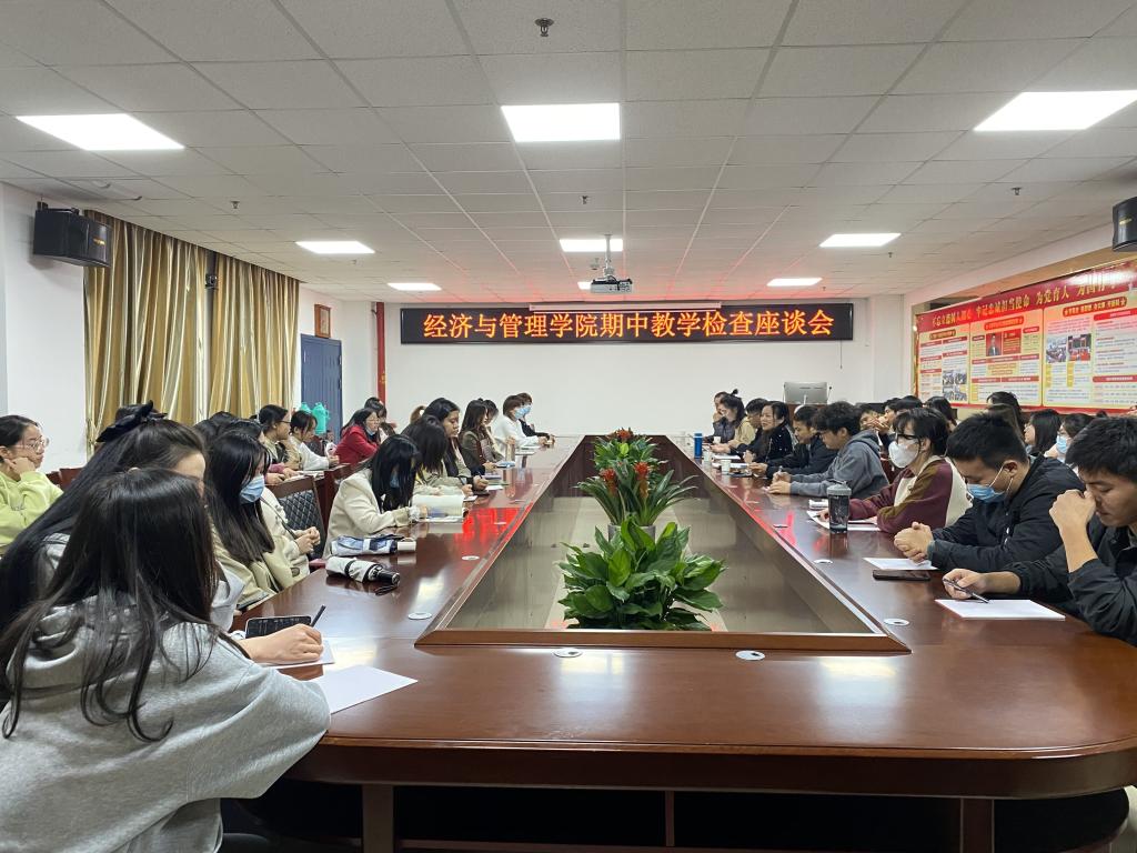 经管学院2021-2022第一学期研究生教学期中检查座谈会于2011.11.4晚19时在文科楼505会议室举行,浦京集团官网研究生管理团队(分管副院长裴潇、MBA教育中心主任李洪文、MPAcc教育中心主任叶云、研究生秘书谢本贵/余晶晶、研究生辅导员朱翠玲等)及2020级、2021级研究生代表共60余人参加了此次座谈会。分管副院长裴潇主持了会议。