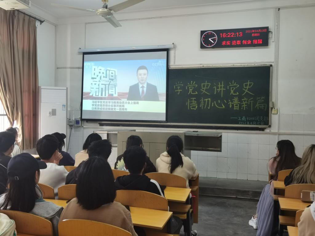 团日活动主要围绕五个部分开展。第一部分,开展党史学习会。各个团支部以支部大会为主要形式,组织学生深入学习领会习近平关于党史的重要论述,学习《中国共产党简史》,学习《关于〈印发湖北共青团“学党史、强信念、跟党走”学习教育实施方案〉的通知》、《关于在本科学生中开展“长大学子心向党”党史学习教育系列活动的通知》文件精神,紧紧围绕学懂弄通做实党的创新理论,切实做到学史明理、学史增信、学史崇德、学史力行。第二部分,集中开展入团仪式。各个团支部开展了一次集中的入团仪式。组织团员重温入团誓词,邀请优秀团干、优秀团员等分享交流成长体会、感悟跟党初心,教育引导团员看齐榜样、学习先进。第三部分,组织学习“学党史、强信念、跟党走”学习教育线上记载功能操作。“智慧团建”系统已上线“学党史、强信念、跟党走”学习教育专区,各个团支部组织学习“智慧团建”系统线上记载功能操作,及时将党史学习教育开展情况录入系统,主要包括专题学习会、专题组织生活会、主题团日、入团仪式和其他实践教育活动开展情况及团干部开展专题宣讲情况。第四部分,组织开展“百生讲坛”优秀主讲人评选活动。各个团支部以“百生讲坛”为载体,以主题班团会为平台,采用线上线下相结合、短视频、故事会等方式,讲好爱国爱党的历史故事、青春故事,讲好新时代先进青年在党领导下的创新故事、奋斗故事、成长故事。第五部分,组织“青年大学习”网上主题团课(第十二季)学习。各个团支部组织支部成员参与第十二季“青年大学习”网上主题团课学习。同时,部分团支部还围绕学习主题,结合实际创新开展了线上线下支部活动。