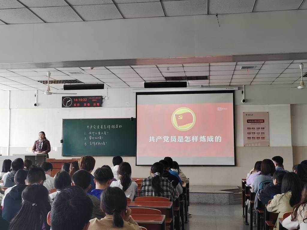 紧接着,王书记依次提出“为什么要入党”、“拿什么入党”和“怎样才能入党”三个问题。王中梅副书记从对党的认同感和爱国情感方面引导大家思考自己的入党动机;她阐述了个人在能力、道德品质和实践三个方面应具备的成为党员的素质以及大学生在学校生活中应拿出的具体行动。
