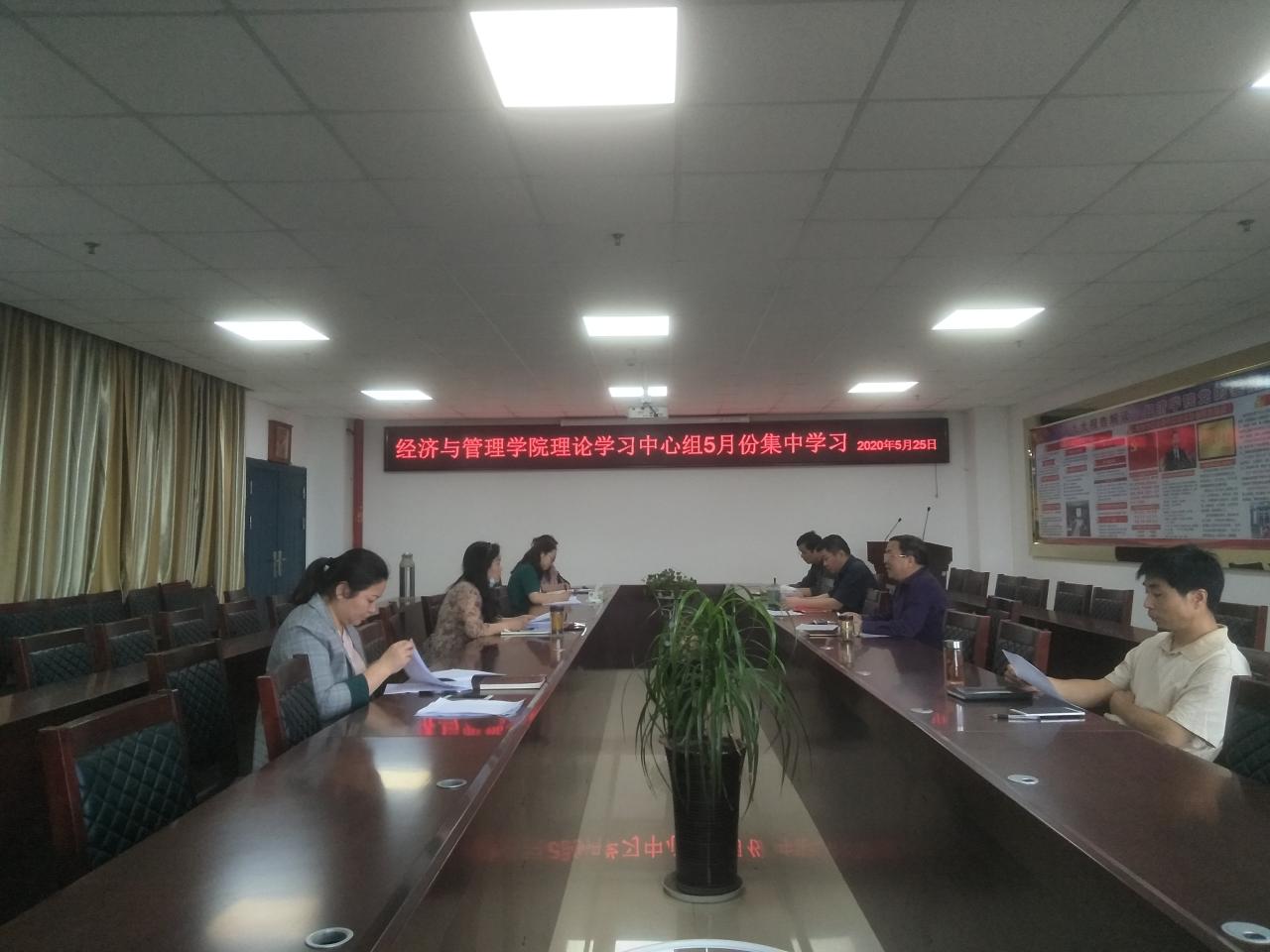 2020年5月25日上午,350vip浦京集团官网党委理论学习中心组在文科楼505会议室开展了集中学习。学院党委书记樊帆主持会议,理论学习中心组的全体成员参加了学习。