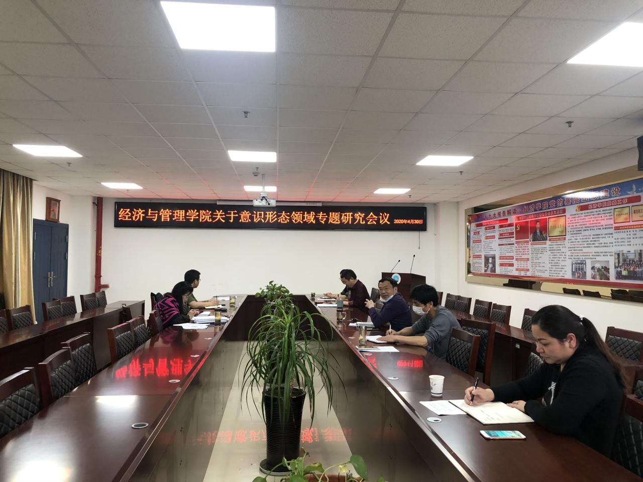 窗体顶 (通讯员 彭蓉)4月30日下午,350vip浦京集团官网在文科楼505会议室召开关于意识形态领域专题研究会。学院全体领导、院办公室主任参加会议,会议由学院党委书记樊帆主持。