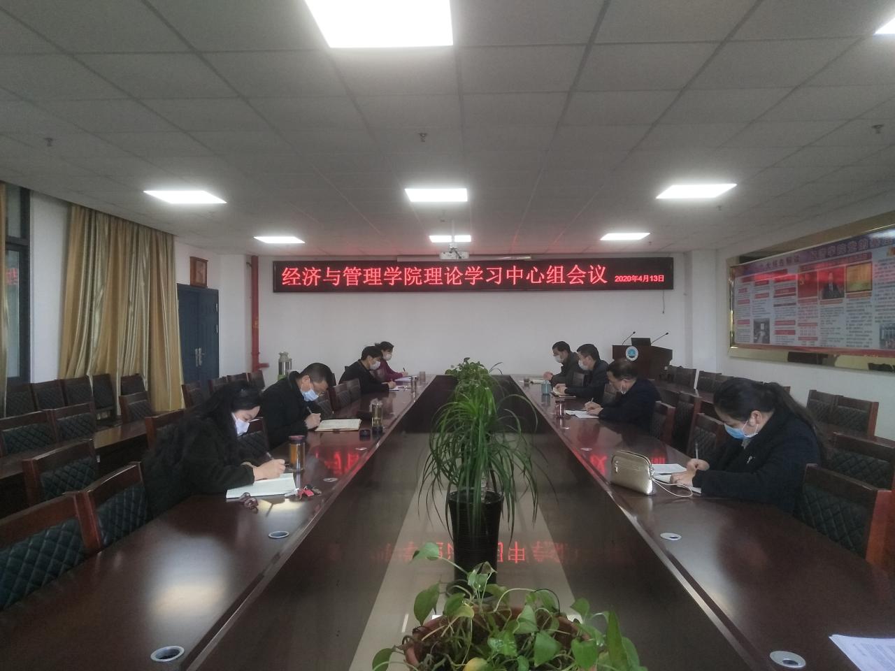2020年4月13日上午,350vip浦京集团官网党委理论学习中心组在文科楼505会议室开展了集中学习。学院党委书记樊帆主持会议,理论学习中心组的全体成员参加了学习。