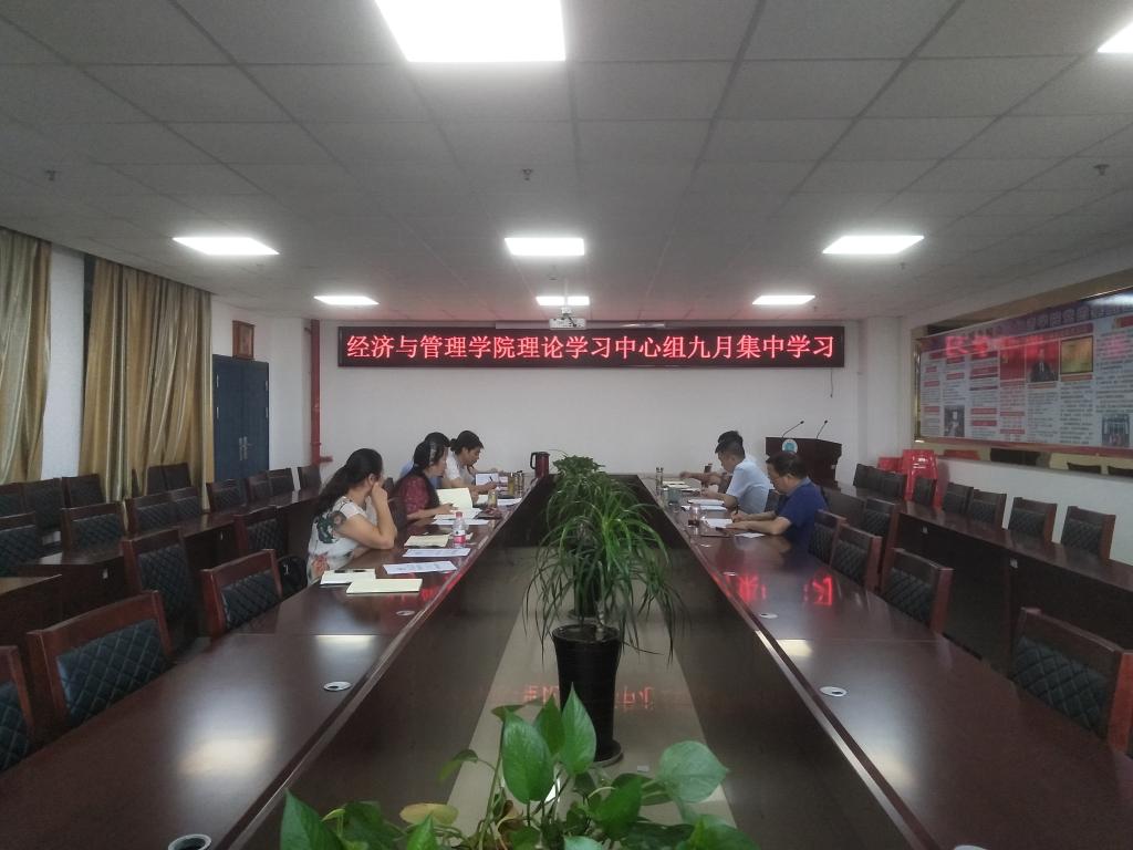 2019年9月9日上午,经济与管理学院党委理论学习中心组在文科楼505会议室开展了集中学习。学院党委书记樊帆主持会议,理论学习中心组的全体成员参加了学习。