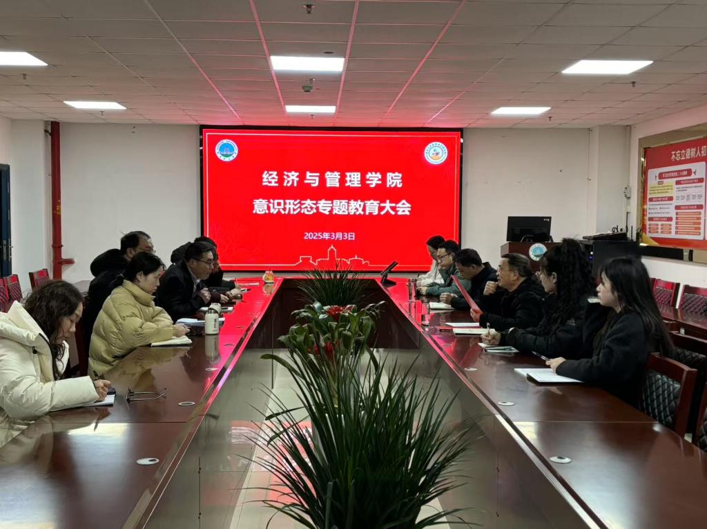 (通讯员 宋玉婷/图 贺雄/文)3月3日,学院召开意识形态专题教育大会。学院党委书记樊帆,全体行政人员参加会议。学院党委副书记平先锋主持会议。