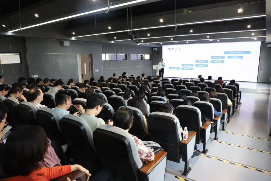 院长陈承作学院高质量发展战略目标与任务发布工作的宣讲,从学院2025年总体战略思路、工作目标、实施举措三个维度进行系统阐述。他强调要乘"学校决胜一流"之势,凝聚"干事创业、时不我待"共识,汇聚"功成在我、争先创优"合力,呼吁全体教职工在经管学院高质量发展征程中敢想敢为、勇于担当、奋发有为,号召全体教职工主动领取“高质量发展任务”,积极支持“责任状上墙”,时刻将自己摆到学院事业发展中来,形成全院上下“共建共创共享,共促发展”的良好氛围。