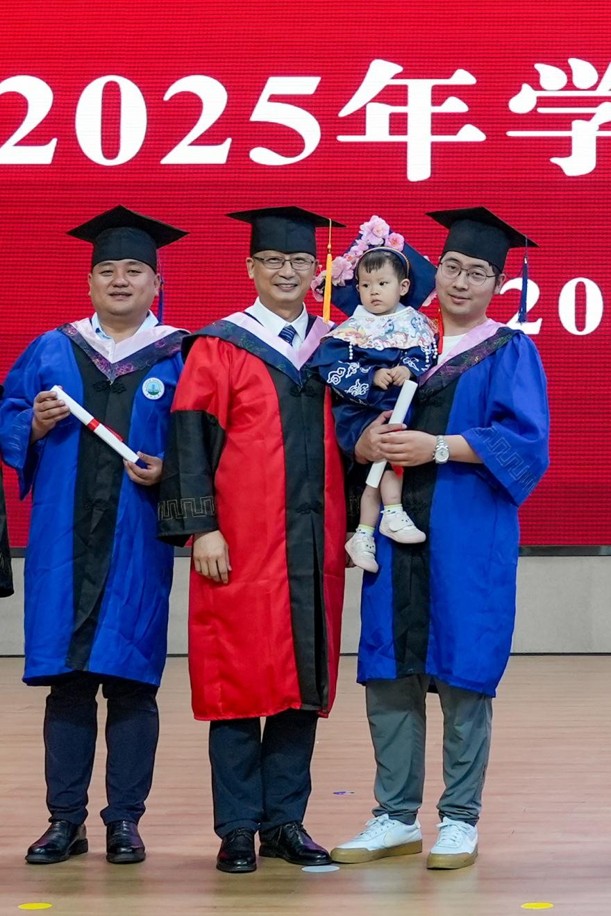 更有温情一幕感动全场,经管学院27岁硕士毕业生,从院长陈承教授手中接过学位证书时,怀中的萌娃瞬间成为全场焦点。