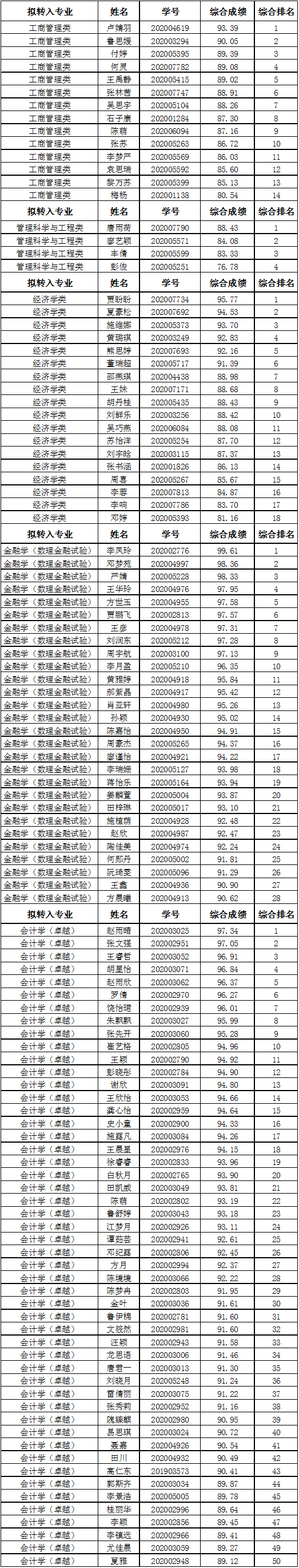 根据《350vip浦京集团官网普通本科生专业分流与转专业管理办法(试行)》(长大校发〔2019〕260号)文件以及教务处《关于2020级普通本科生春季学期转专业工作的通知》要求,结合经管学院2020级本科生春季学期转专业工作方案的具体安排,浦京集团官网于1月20日组织了对拟转入学生的在线面试。综合学习成绩、面试成绩及附加分条件,经浦京集团官网党政联席会讨论通过,现将拟接收名单予以公示。公示期为1月22日-1月23日,如有异议,请在公示期内咨询学院教学办公室。