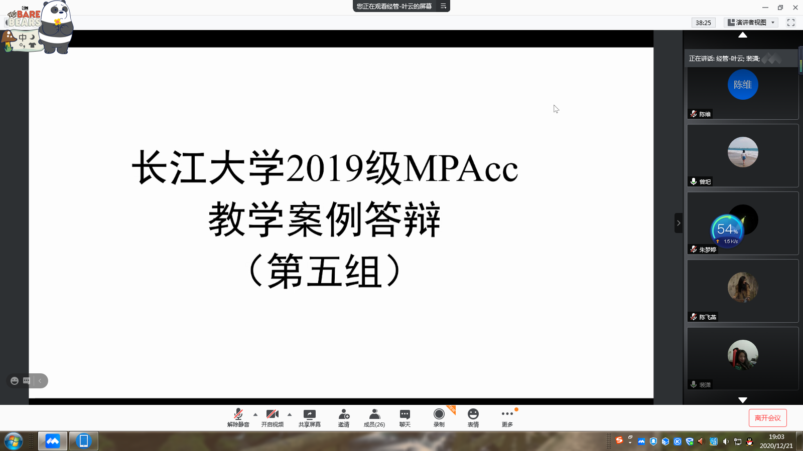 2020年12月20日至21日,经管学院2019级MPAcc研究生教学案例论文答辩在文科大楼举行。受疫情影响,本次研究生教学案例论文答辩根据学校相关文件,采用线上和线下相结合的方式进行。
