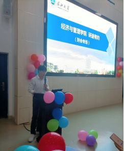 会议伊始,由班主任代表涂雷进行2021年经管学院考研录取情况介绍。他先从考研录取率着手,介绍目前考研形势严峻,接着分享了若干考研典型案例,建议同学们能够全面考虑自身情况,沉着应“研”考,谨慎择校。