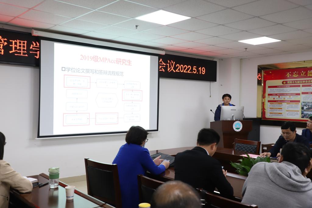 裴潇副院长就浦京集团官网研究生人才培养、学位管理与招生工作等进行了总结汇报,并通报了今年申请学位论文答辩的资格审核和论文盲审情况,对近期工作进行了部署。MBA教育中心李洪文主任和MPAcc教育中心叶云主任分别对MBA和MPAcc硕士培养的教学、实践、论文等各环节提出了要求。