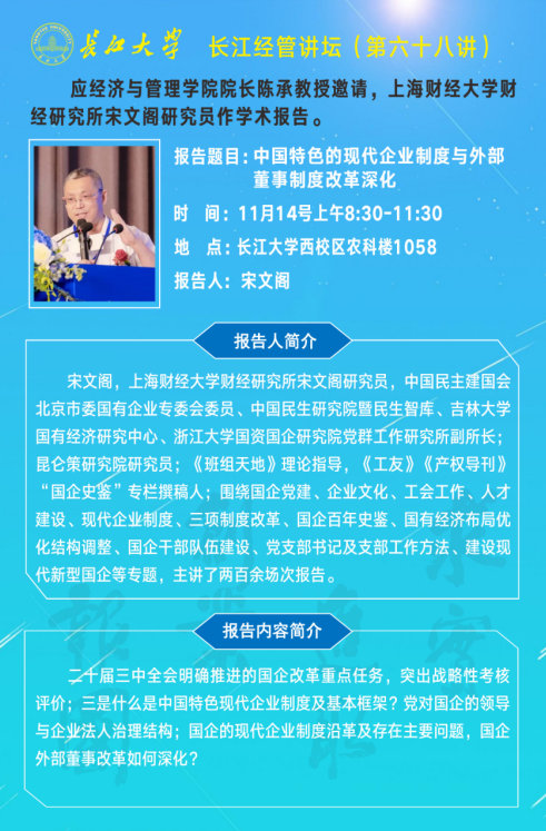 长江经管讲坛(第六十八讲)