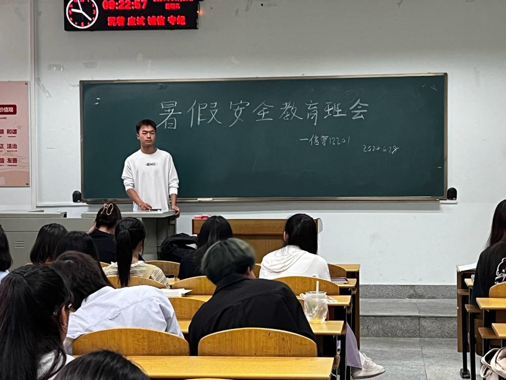 学院的全体学生,以班级为单位组织开展假期安全教育主题班会。班会首先明确告知大家放假时间,提醒同学们做好假期规划;然后从安全观念、宿舍安全管理、暑期留校审批、留校学生管理等多方面多维度进行了重点强调,进一步加强安全宣传和健康引导,增强学生的安全防范意识。