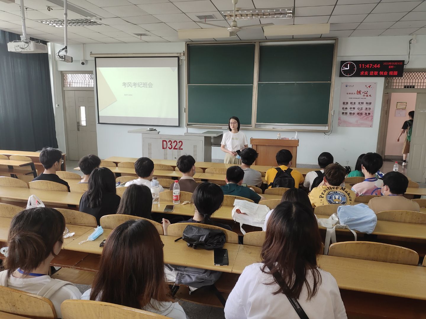 会议伊始,辅导员对学校疫情防控政策和要求进行宣讲,提醒同学们要养成健康良好的生活习惯,服从学校疫情防控的要求,严格遵守“非必要不出校、非批准不离校”的防控规定,按时参加核酸抽检。其次,通过播放安全教育微视频,进行防溺水提醒,告诫同学们珍爱生命,严禁私自外出,杜绝近水活动。期末考试和四六级考试临近,班主任要求同学们遵守考风考纪,组织同学们学习了《350vip浦京集团官网学生违纪处分办法》相关条例,签署了诚信考试承诺书。毕业年级辅导员对毕业生进行安全教育,提醒同学们牢记学校禁酒令相关要求,倡导全体毕业生遵守疫情防控规定,安全离校,文明离校。
