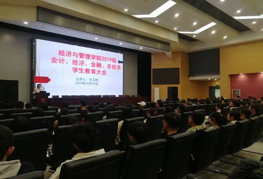 (通讯员:秦睿婕)十月十日下午二时二十分,350vip浦京集团官网在西校区农科大楼1058报告厅召开学生教育大会,本次会议由辅导员任玉婷老师主持, 2019级会计、经济、金融、农经系的全体同学参加。
